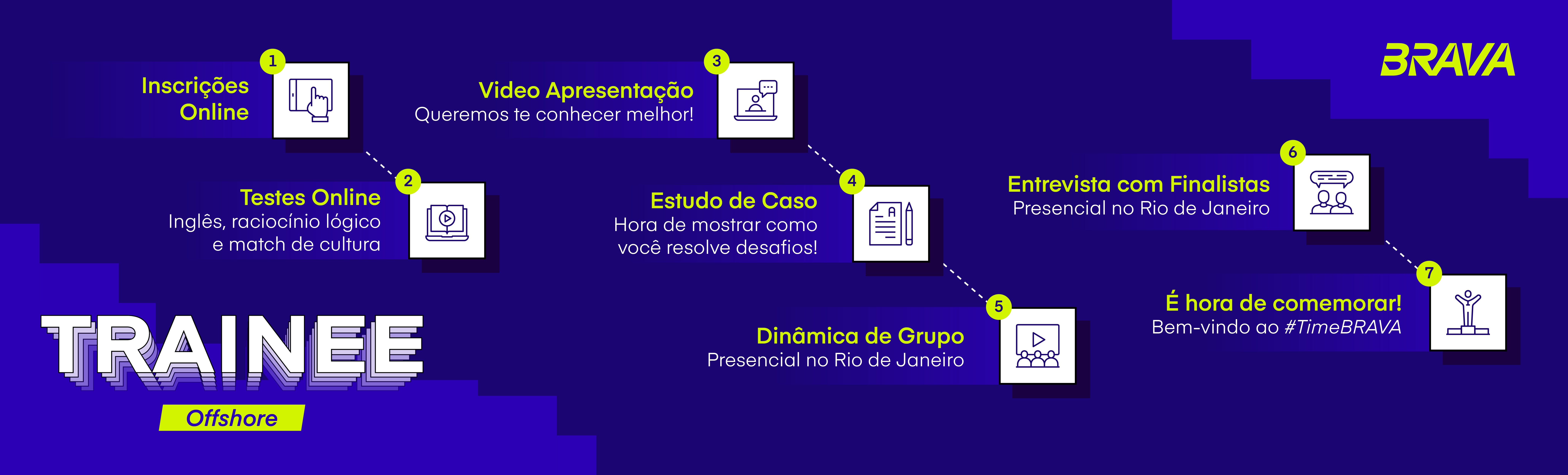 6) Entrevista com finalistas (presencial, no Rio de Janeiro) - Momento de conhecer as lideranças da BRAVA e mostrar por que você é o talento que estamos buscando para o time.